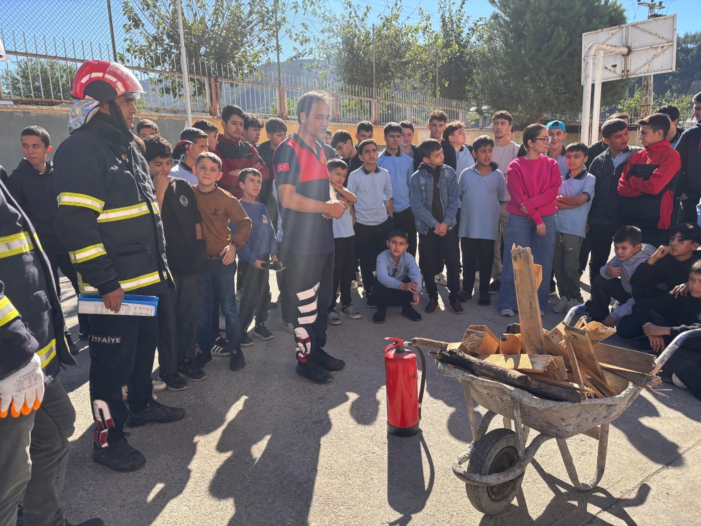 Bahçe Belediyesi itfaiye ekipleri okulumuzu ziyaret ederek öğrencilerimize yangın anında ve sonrasında yapılması gerekenleri anlattı. Ekipler, olası bir yangın durumunda nasıl davranılması gerektiğini adım adım açıklarken, yangın söndürme tüplerinin doğru kullanımını da uygulamalı olarak gösterdi. Öğrenciler, bu sayede hem teorik hem de pratik bilgiler edinerek bilinçlendi. Etkinlik, öğrencilerin güvenlik bilincini artırmak açısından büyük önem taşıdı.